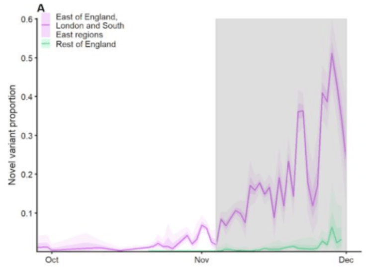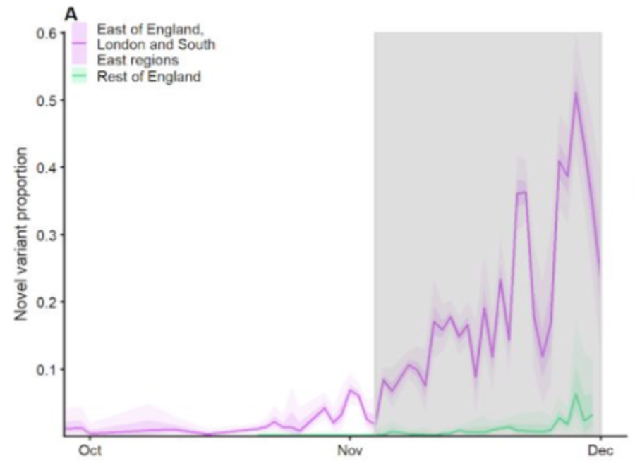 - Estimated transmissibility and severity of novel SARS-CoV-2 Variant of Concern 202012/01 in England (Centre for Mathematical Modelling of Infectious Diseases). Estudio en fase “preprint” que, utilizando diversos modelos matemáticos, estima que la transmisibilidad de la nueva variante (202012/01) del SARS-CoV-2 es un 56% (IC95% 50-74%) superior al de otras variantes. Los autores anticipan la necesidad de tomar medidas más estrictas que durante la segunda ola para frenar la transmisión de esta variante. Esta información sobre transmisibilidad debe ser tratada con mucha cautela / escepticismo debido a la incertidumbre de algunas de las asunciones en el modelo modelo. Si alguna de ella/s no son correctas la estimación podría separarse mucho de la realidad.