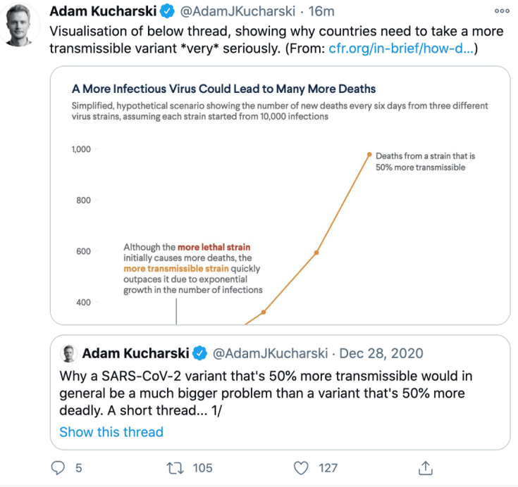 - En este hilo @AdamJKucharski explica la relevancia del aumento de transmisibilidad esperado en la cepa británica.