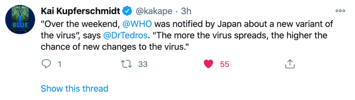 - En el hilo de arriba, @BillHanage reflexiona sobre la variante B.1.1.28 (Brasil) y sus implicaciones.