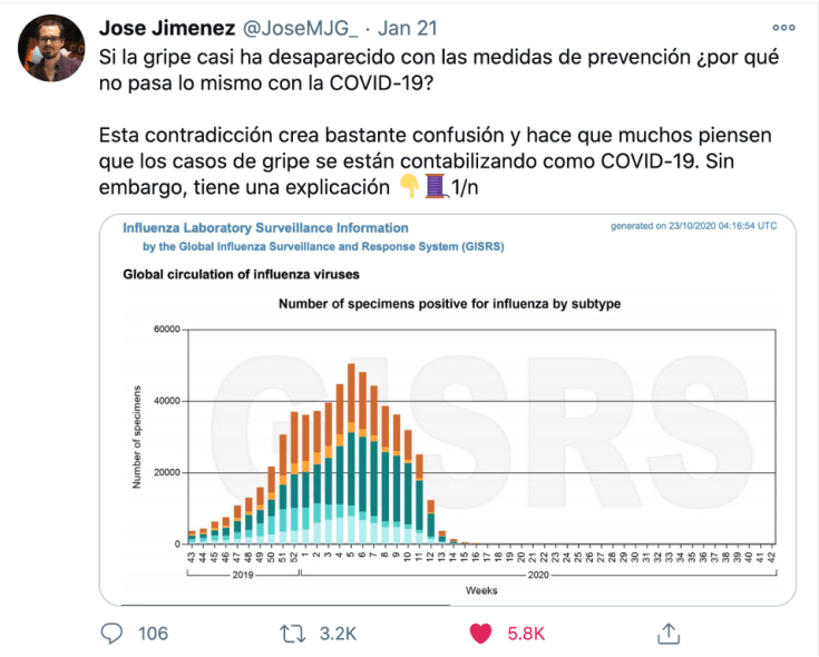 - En este hilo, @JoseMJG reflexiona sobre las razones por las que tan apenas hay gripe circulando este año.