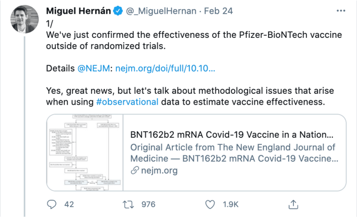 - En el hilo de arriba, @_MiguelHernan, coautor del estudio y experto metodólogo en inferencia causal explica cómo los estudios observacionales pueden complementar la evidencia derivada de los ensayos clínicos. El ejercicio práctico de identificación y control de factores de confusión es magistral.