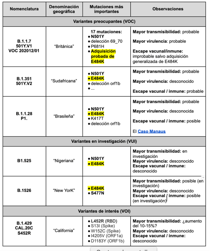 - Nuevas variantes: Definiciones OMS de variantes preocupantes y variantes de interés y un interesantísimo hilo aclarando conceptos sobre el tema. Documento actualizado ECDC sobre variantes. Por qué (y cómo) la variante británica es más transmisible. Una nueva variante en el horizonte: B.1526 (Nueva York)