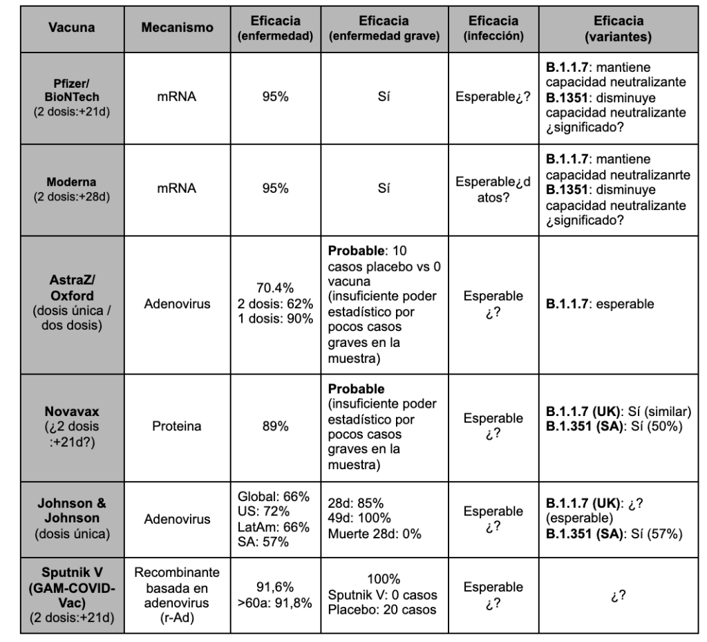 - Interim findings from first-dose mass COVID-19 vaccination roll-out and COVID-19 hospital admissions in Scotland: a national prospective cohort study (The Lancet) Al analizar la eficacia de una única dosis de vacuna (Pfizer/BioNTech y Oxford/AstraZeneca) en la población escocesa se estimó que entre el más de 1.300.000 habitantes de Escocia vacunados la probabilidad de ingresar por Covid-19 fue entre el 88% (O/AZ) y el 91% (P/B) inferior que entre la población no vacunada. Este editorial analiza este trabajo y sus implicaciones. #VaccinesWork