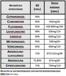 Los antibióticos a utilizar en la transición iv a oral: