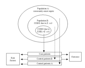 Otra pregunta que también se ha respondido desde el mismo grupo con un diseño muy similar es el de cuáles son los factores de riesgo de infecciones comunitarias por E. coli BLEE (Rodríguez-Baño J et al.Community-Onset Bacteremia Due to Extended-Spectrum b-lactamase-Producing Escherichia coli: risk factors and prognosis. Clin Infect Dis 2010;50:40-8).